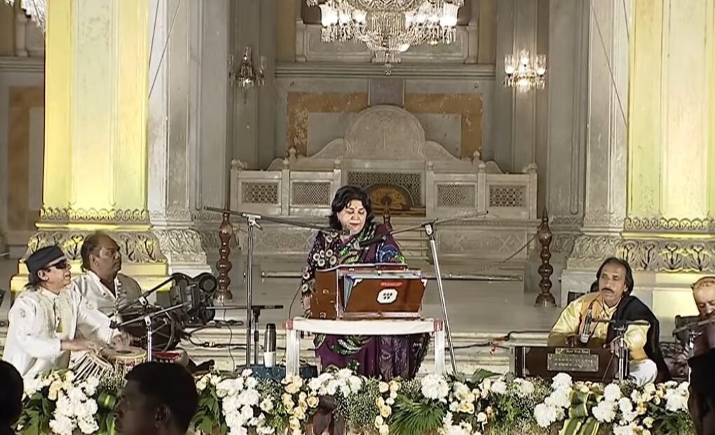 The highlight of the evening was her soulful interpretation of the classic Sufi qawwali -Dama Dam Mast Qalandar, a centuries-old ode to the revered saint Lal Shahbaz Qalandar. Featuring in her acclaimed album Sada-e-Sufi, this energetic piece – with its iconic lines praising the saint’s ecstasy and devotion – ignited the crowd with rhythmic fervor and spiritual joy.