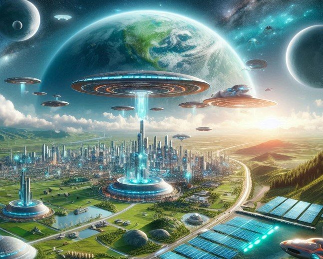 Gone are the days of fossil fuels. Earth now relies on quantum energy nodes, which tap into the fabric of spacetime to extract limitless power. These self-sustaining energy sources eliminate the need for traditional grids, ensuring every individual has access to unlimited electricity.